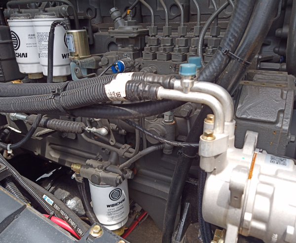 Động cơ Cummins QSL9.3 với kim phun điền tử có thể kiểm soát lượng nhiên liệu phun vào theo định mức phù hợp với chế độ vận hành của động cơ, giúp thiết bị tiết kiệm nhiên liệu tối đa và đạt hiệu suất cao. Đường cong động cơ được thiết kế tối ưu hóa để tạo ra nhiều mô men xoắn lớn hơn và tăng công suất khi gặp sức cản bên ngoài cùng với việc giảm tốc độ quay động cơ, giúp thao tác xúc và nâng gầu mạnh hơn.